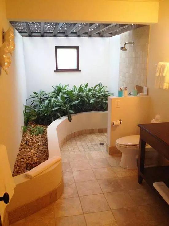 把卫生间变成花园,首先,你需要一个大大的卫生间,再者卫生间必须有一个大大的窗,或者是天窗,就这样,淋浴时,弥漫的雾气就为植物提供了最好的营养,置身绿色,错把卫生间,当成热带雨林,闭着眼睛,闻着青草香。