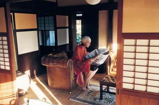 上田义彦喜欢拍摄加恋日常在家中读报的情景,虽然从来不会直接说出“爱”之类的话,但照片中能读出他的缱绻深情。