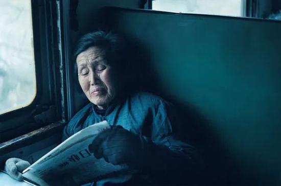 京沪线的绿皮火车上,低头看报的老奶奶。