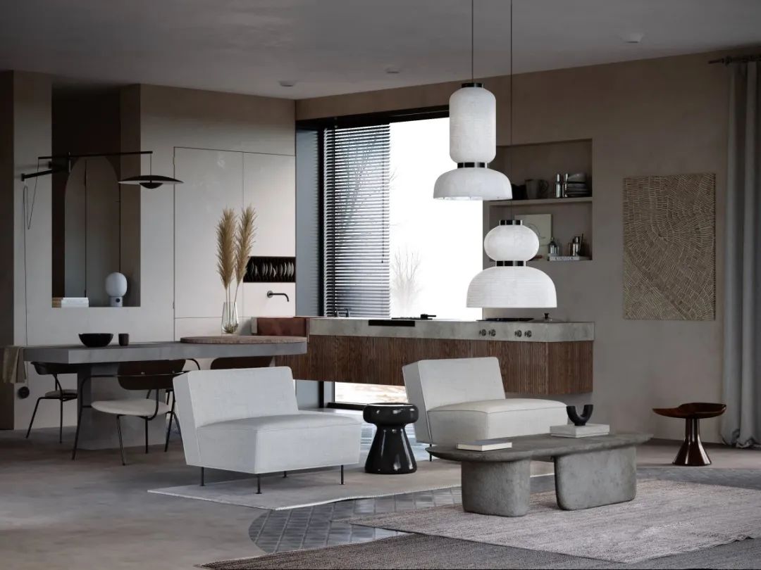 现代侘寂风的房子,空间一定够开阔,家具也不能很多,看起来没有拥挤的感觉,要有足够的“留白”。▼