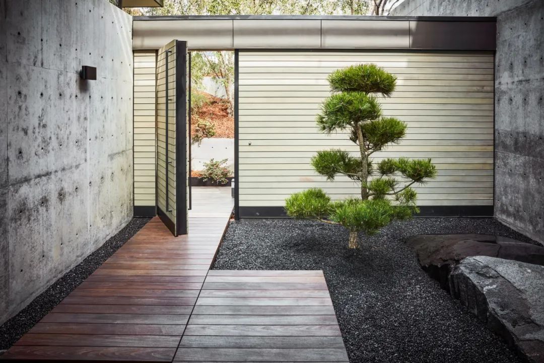 前面说肯豆家的绿植属于日式风格。网球巨星莎拉波娃的家也是,水泥墙、木地板、砂石配松树,从门口就感受到了浓浓的日式风。▼