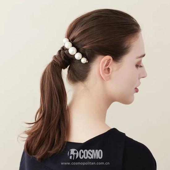 入秋之后,可以选择丝绒类的发带为季节“增温”。Jennie这款黑色丝绒珍珠发带就刚刚好,白色小珍珠的不规则点缀增添了精致感。