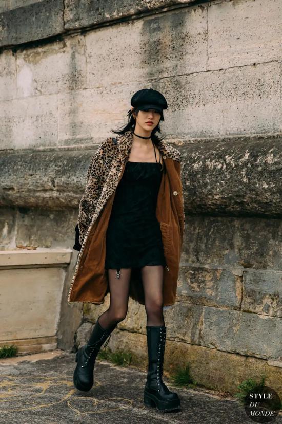 还有Sora choi和Fernanda Ly这两位模特,一登场就是老二次元了。她俩都喜欢高筒机能靴配裙子的穿法,就像漫画少女爱穿的那样。但不建议腿不够细长的“普通二次元”女孩这样穿,你想想每次穿脱、系鞋带得多麻烦,中低筒的机能军旅靴它不香嘛?