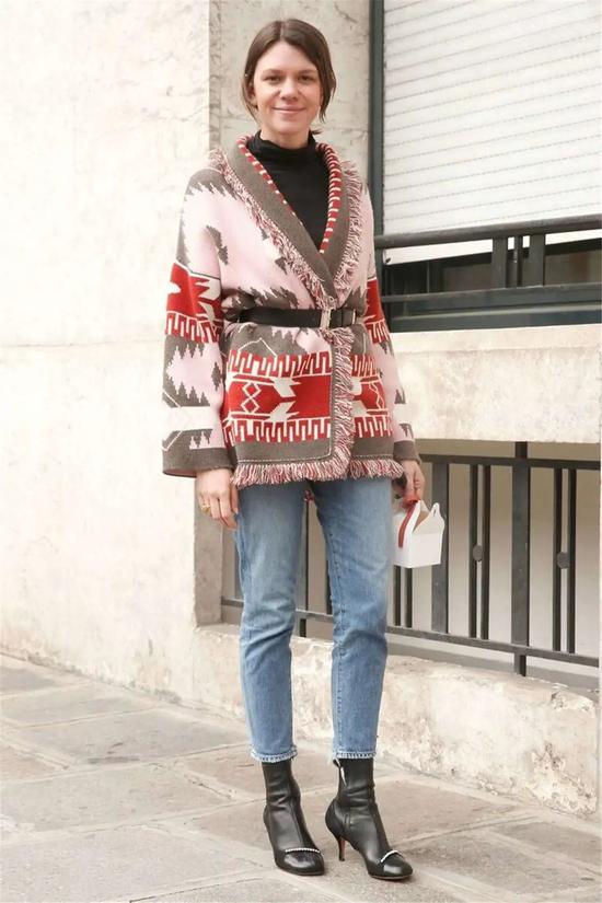 为了能把千篇一律的短款开衫穿出新感觉,我比较建议大家选择宽松一点的版型设计。