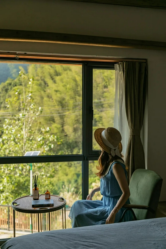 望梅山房坐落于梅树底村,被竹林与青山围绕。坐在院子里,望山听风,仿佛整个人都置身世外!