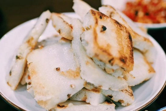 醅糕是常山人的乡愁,口味甜咸两种,小飞君更爱吃咸口的,刚出炉时口味软绵,放凉变干以后还可以用菜籽油煎着吃,外脆内糯,带着火香。