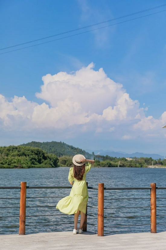 去溪上村舍的路上会经过“芙蓉水库”,它是常山境内最大的水库,景色堪比千岛湖。四面群山环抱,绿树成荫,是名副其实的“江南小九寨”。