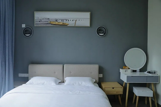 民宿由主人夫妻俩一手打造,充满了“家的味道”,小到房间的麦穗装修物,大到床品衣柜,全是夫妻俩用心挑选的。
