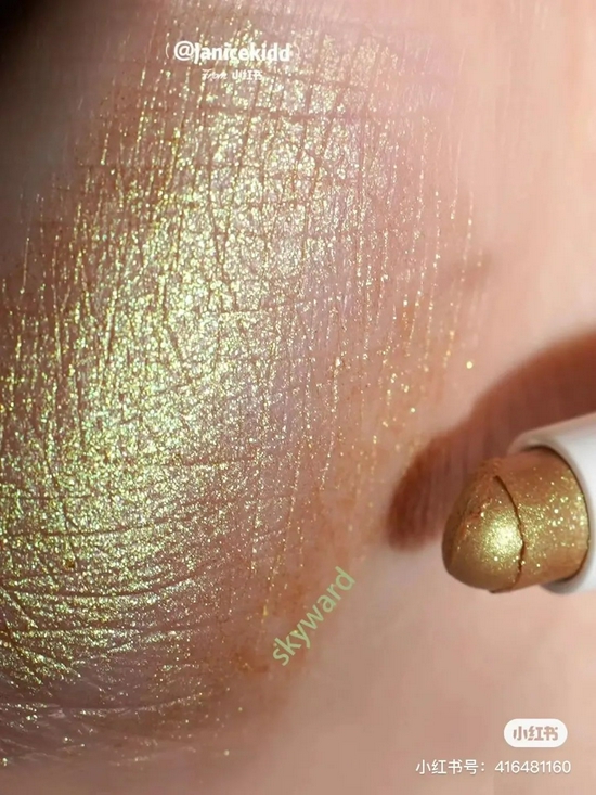 还有两支偏光色的眼影笔,一支黄绿色,一支粉紫色,超级闪亮酷炫,适合叠涂~
