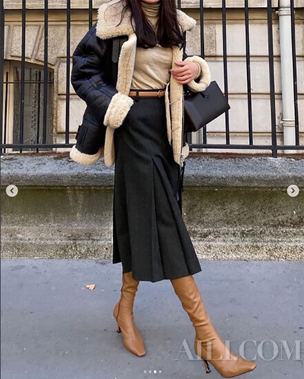皮毛一体的夹克不仅保暖效果出众,而且是一件名副其实的百搭单品,搭配半裙+长靴展现街头洒脱的风格,而天气更冷的时候搭配高领毛衣或者裹一条大围巾,不仅暖和而且很有高级感哦!