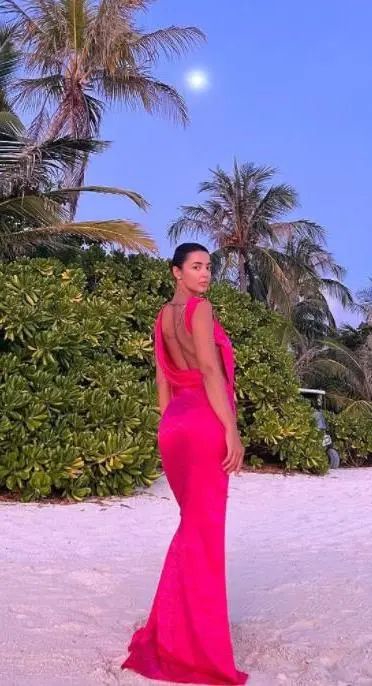 她还穿过两条不同风格的玫粉裙,在性感火辣和舒适自由之间来回跳。给我们一种玫粉色也没那么难以驾驭的视觉体验。