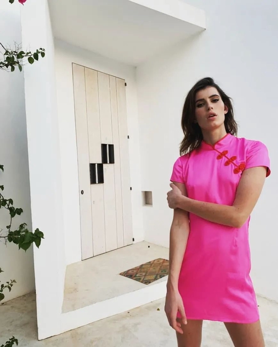 De La Vali的创始人Laura Castro也经常在自己的ins上晒自己穿自家旗袍的照片。短旗袍搭配牛仔靴,是现在新中式很流行的穿法。