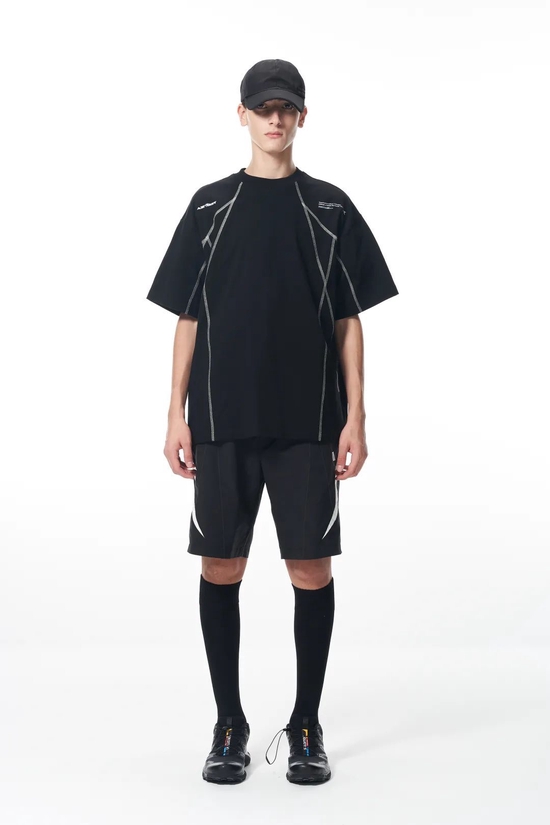 结构感十足的短袖上衣,弧线的切割充满设计感。面料轻薄透气,搭配简单的骑行裤就很时尚。
