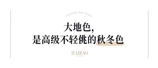 如果说,乳白色是在驼色的基础上拉低饱和、抽掉色彩。那么温暖的大地色,则是把驼色往红色、棕色再推一推,摩登复古与秋冬感就这么出来了。