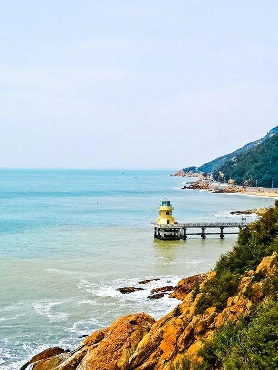 它连接了汕头市澄海区与南澳县,不远处屹立着灯塔与纯白长桥,以及闪闪发光的海面形成了鲜明对比。