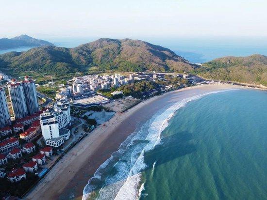 它的湾口朝东南向,湾腹很深,湾弧达2.9公里,登高俯视,就像一弯新月。