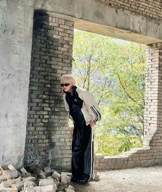 侯明昊带来街头风酷 Guy 皮衣穿搭,他身穿 Aconoix 哥特字体皮革外套内搭同品牌丛林冒险鳄鱼长袖卫衣,搭配水洗牛仔裤,脚穿 Terraincognita 圆头德比鞋,佩戴韩国设计师品牌 Mahagrid 针织帽,复古与叛逆风格相融。